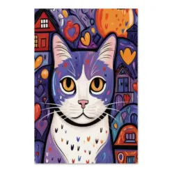 Art Purple Cat Matte Vertical Posters , Cat Art Cat Decor Cat Art Cat Poster Modern Cat Poster