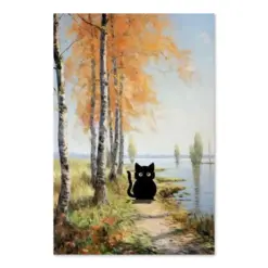 Poplar Autumn Cat Art Cosy Wall Art Black Cat Poster Funky Cat Vintage Cat Drinkable Art Cat Art Floral Print Funny Cat Print