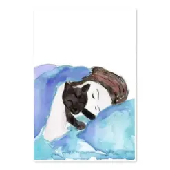 Sleeping Cat Lady Print Watercolor Painting Art Print Black Cat Decor Cat Wall Art Cat Lover Gift Wall Decor Framed