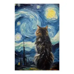 The Starry Night Cat Print Van Gogh Cat Poster Black Cat Art Funny Cat Print Funny Gift Home Decor Poster