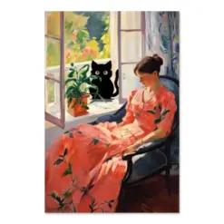 The Young Woman At The Window Black Cat Poster Cat Art Cat Cute Poster Cat Lover Cute Black Cat Drinkable Art Cat Poster Funny Gift