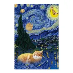 Van Gogh Starry Night Cat Print Cat Poster Altered Art Orange Cat Print Funny Cat Gift Home Decor Poster 00446