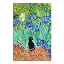 Van Gogh Irises Cat Print Cute Black Cat Print Vincent Van Gogh Cat Poster Funny Cat Art Cat Poster
