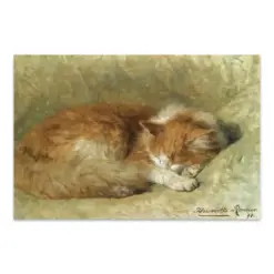 Vintage Kitten Sleeping Painting | Antique Animal Pet Artwork | Classic Cat Portrait Poster | With Century Art Print | Drinkable Art