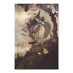 Witch With A Broom And Cat Poster By Ida Rental Vintage Witch Art Elves & Fairies