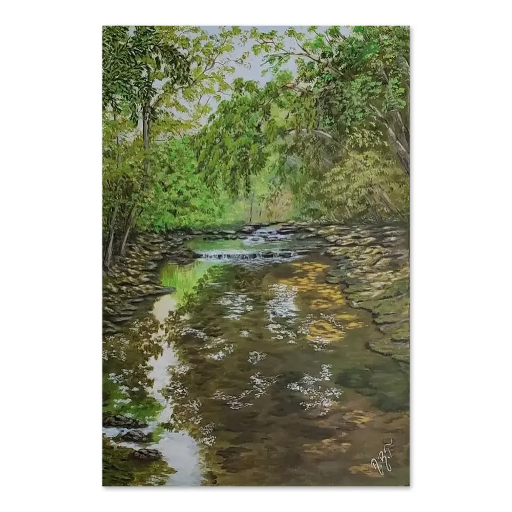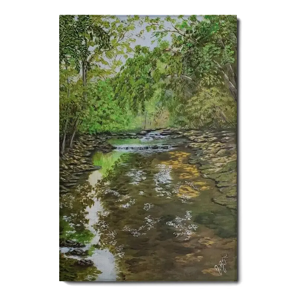 Acrylic Painting , Landscape Original Painting On Canvas , Scenery Art Wall Nature , River Forest Painting , Realistic Painting