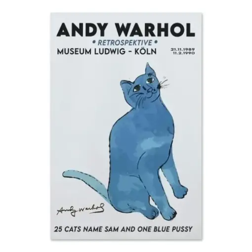 Andy Carol Art Exhibition Poster 25 Cats Name Sam And One Blue Pussy Cat Poster Vintage Art Animal Poster Drinkable High Quality Art