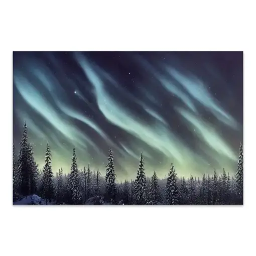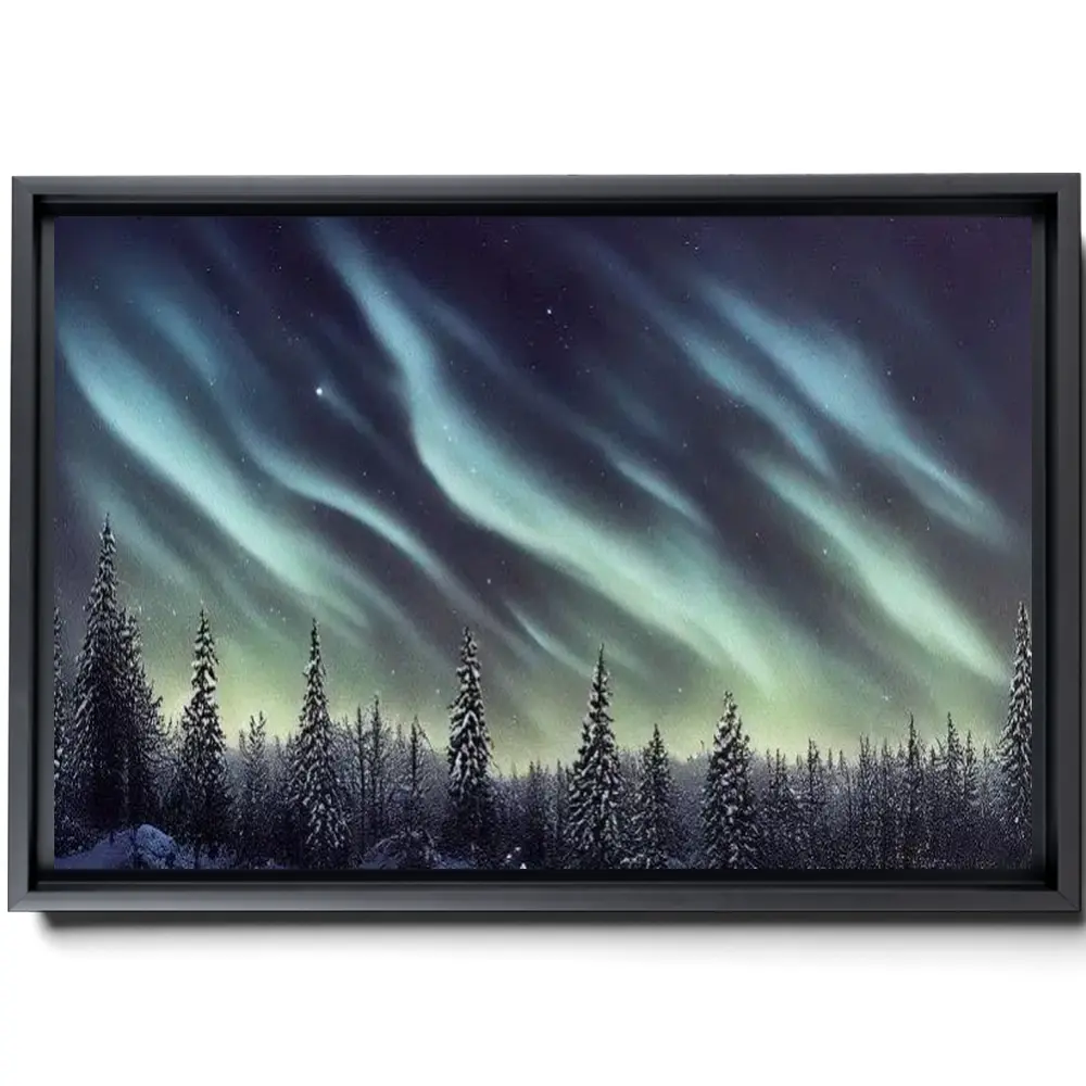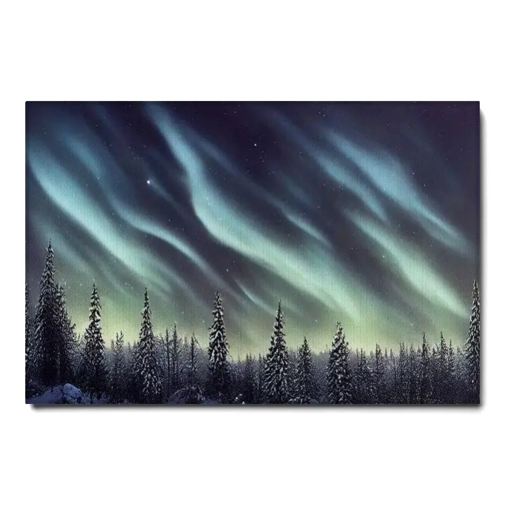 Aurora Borealis Over A Snowy Northern Forest Canvas Print Scenic Winter Landscape Art Northern Lights