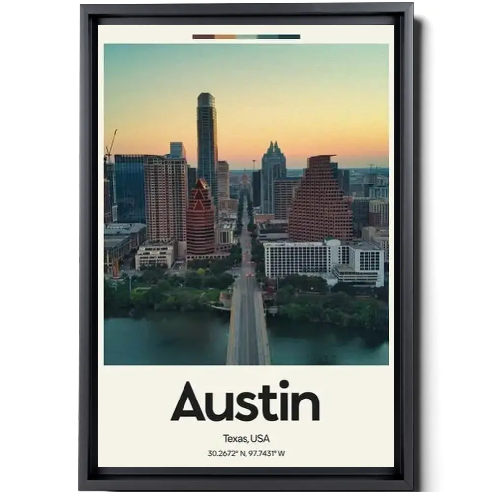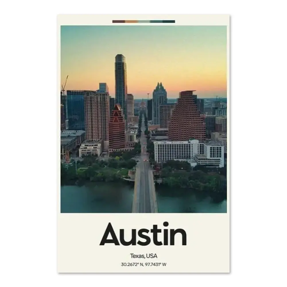 Austin Poster – Oil Painting Technique | United States Wall Art | & Printed Travel Prints | Animalistic Home Decor