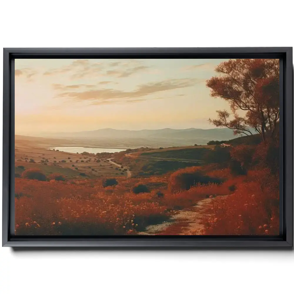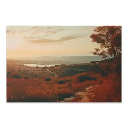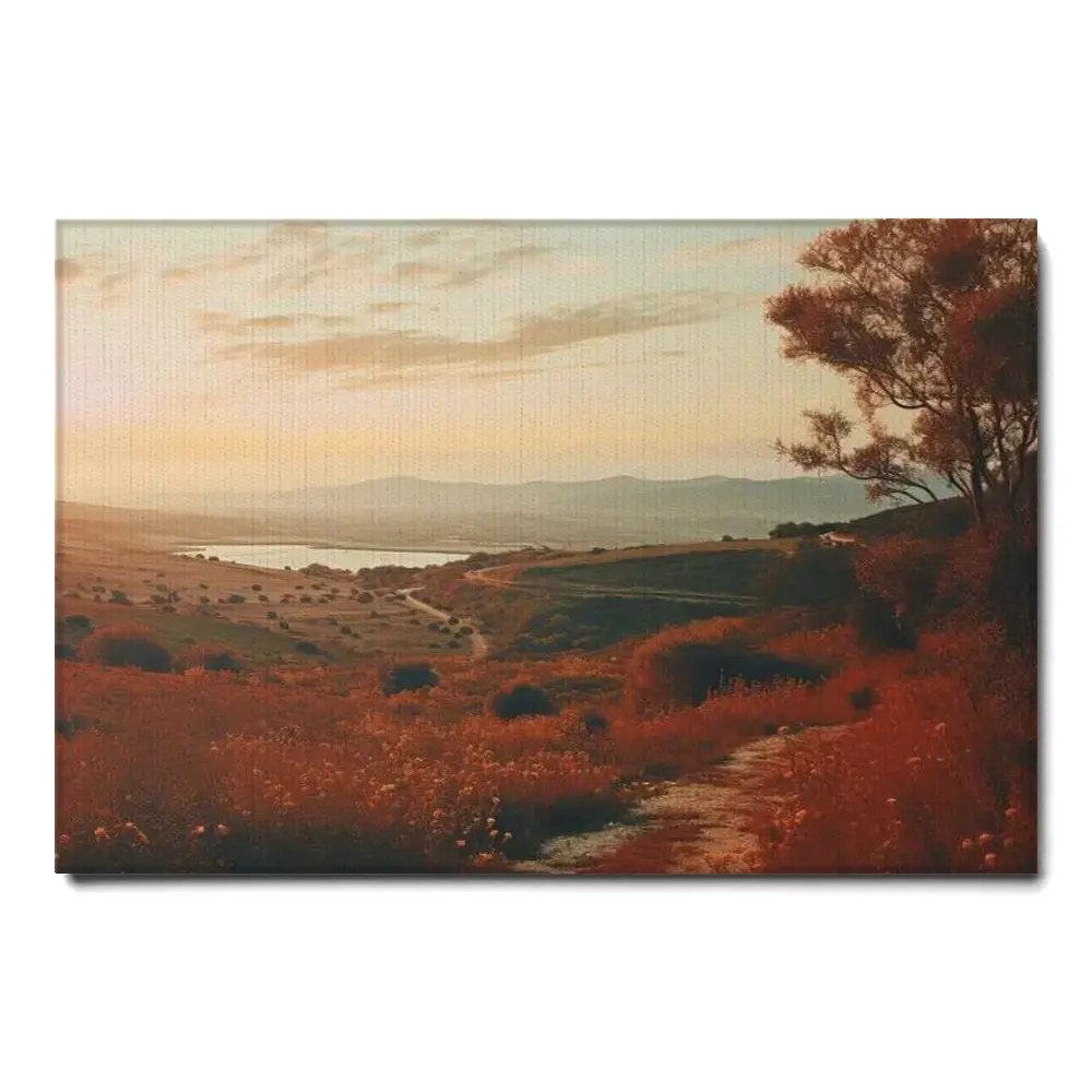 Autumnal Countryside Artful Sunset Landscape Canvas – Serene Landscape Art – Farmhouse Decor – Nature Wall Art – Free Shipping