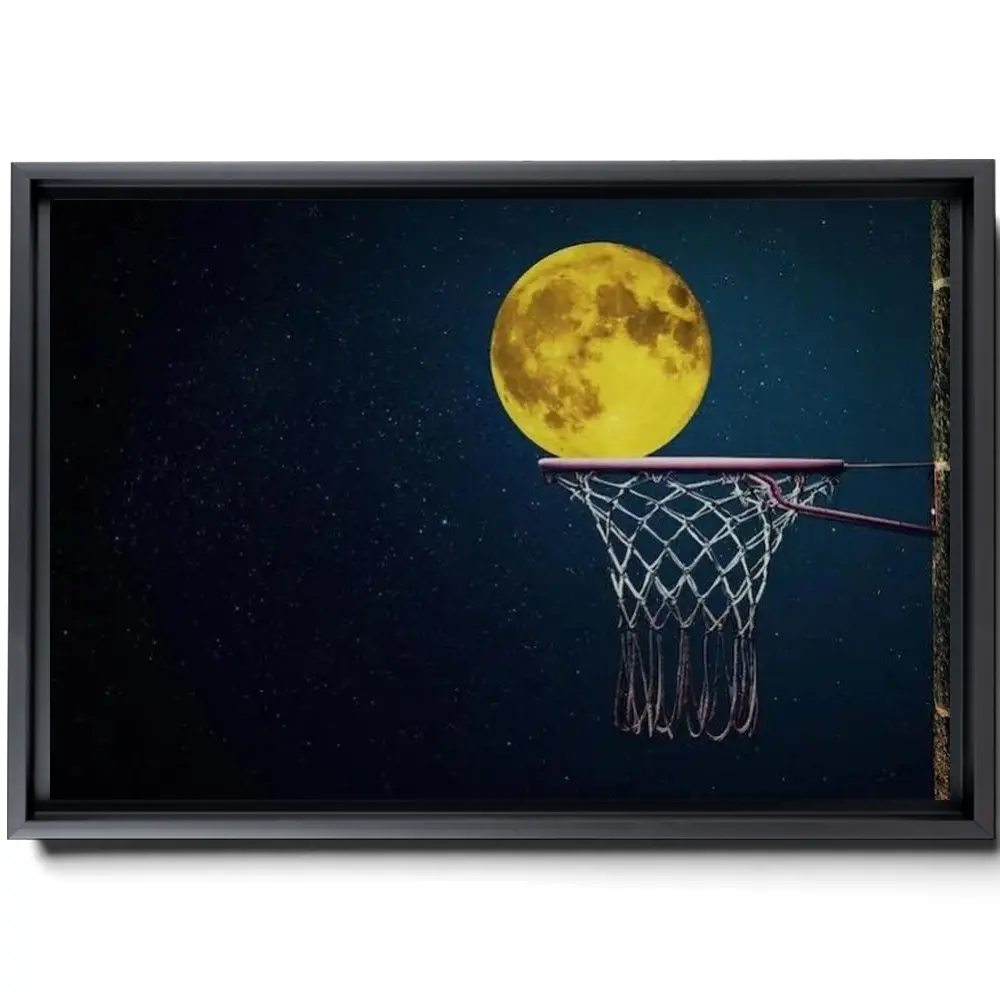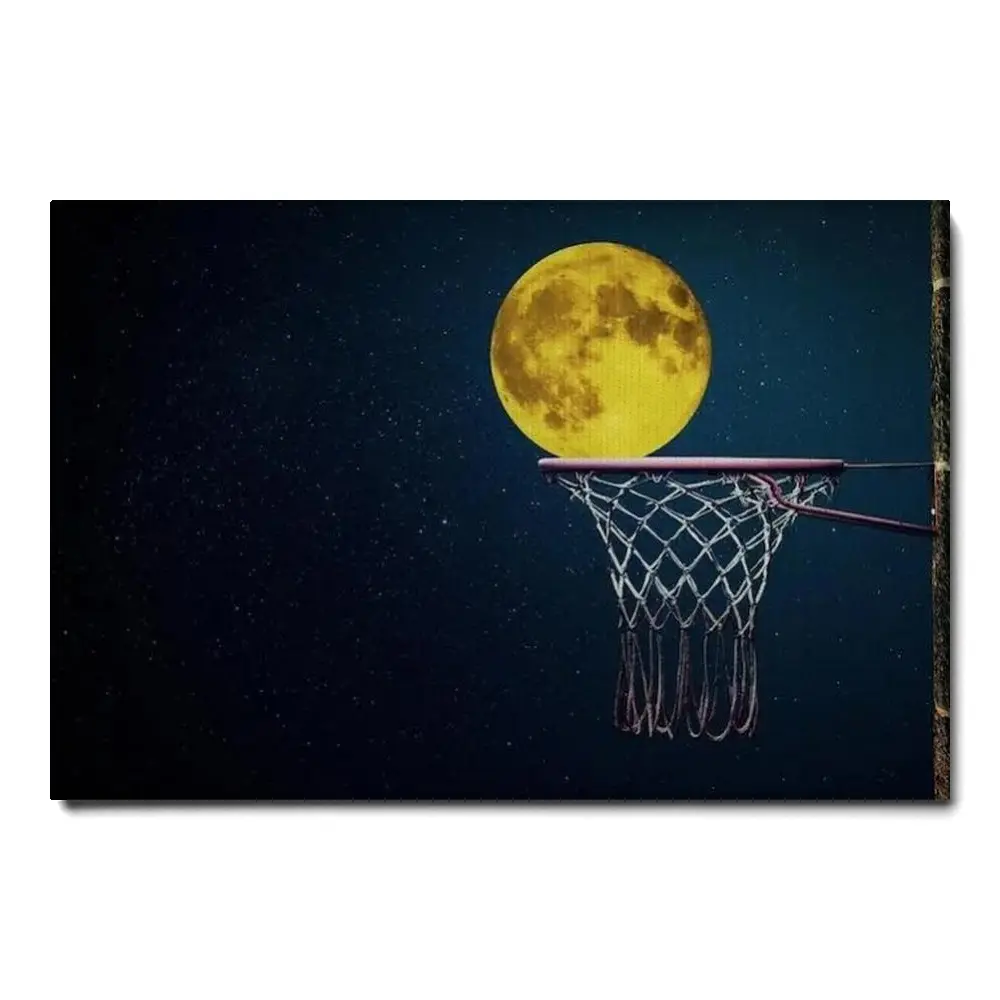 Basketball Wall Art Basketball Hoop Wall Art Night Canvas Art Full Moon Canvas Sports Canvas Art Ready To Hang Canvas