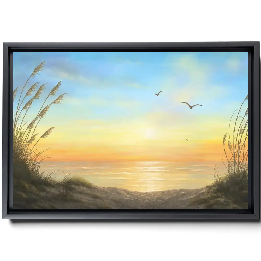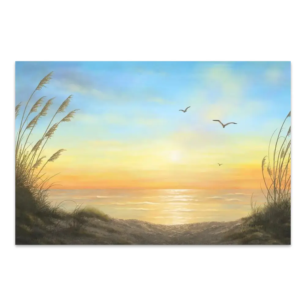 Beach Wall Art Seascape Girlie Coastal Print For Home Decor Warm Golden Sunset Ocean With Sea Grass Beach Scene Landscape Painting