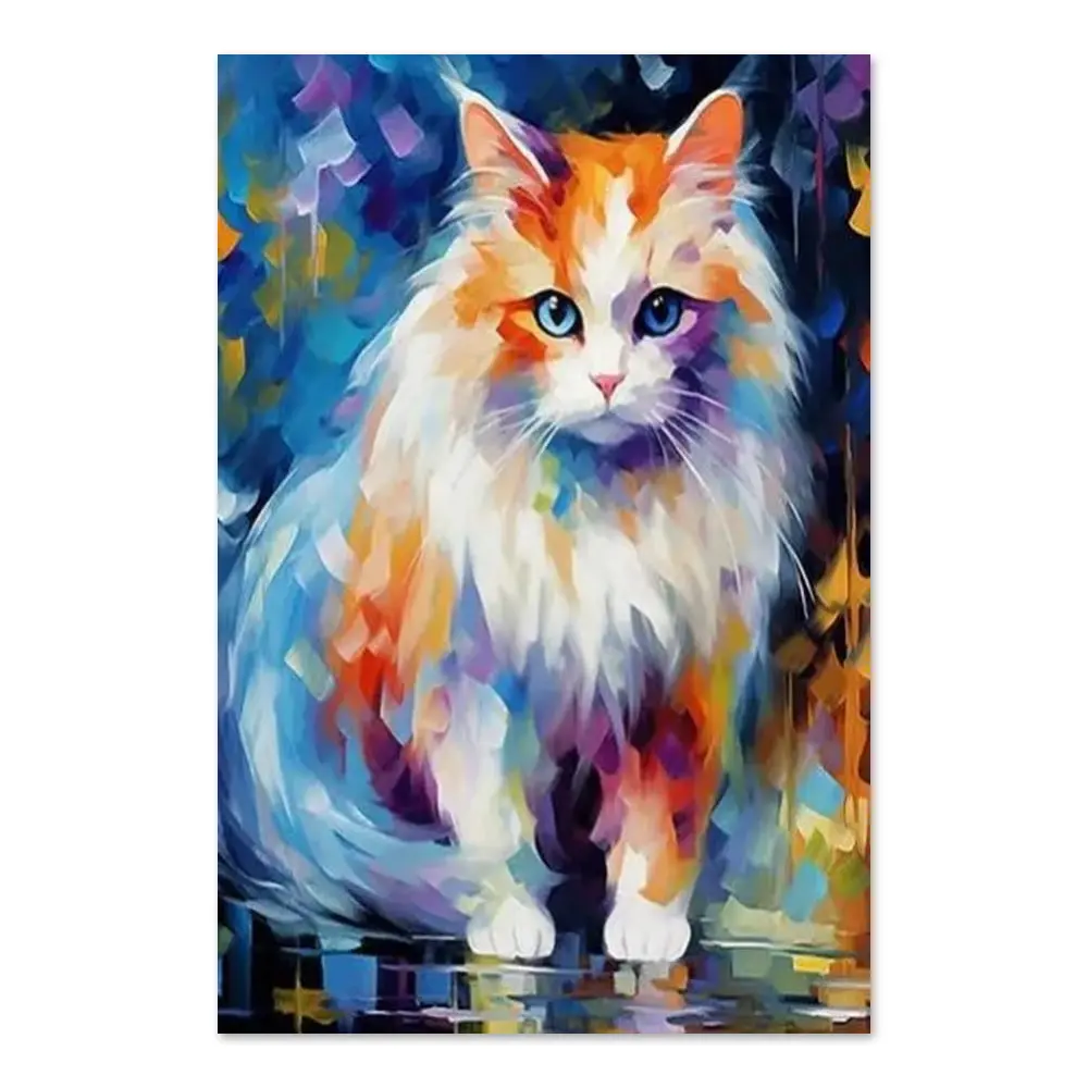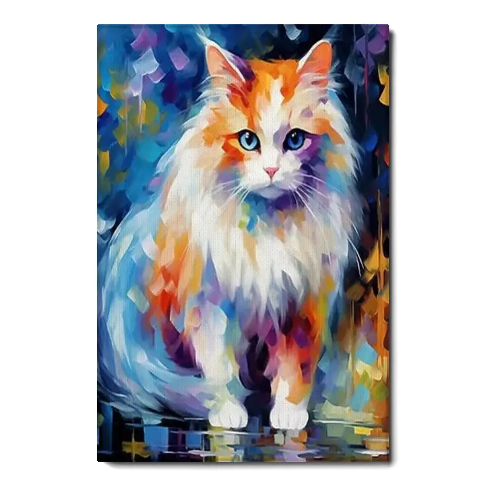 Beautiful Ragdoll Cat Animal Canvas Print | Gift For Ragdoll Cat Lover | Colourful Cat Portrait Painting Canvas Print | Home Decor Wall Art