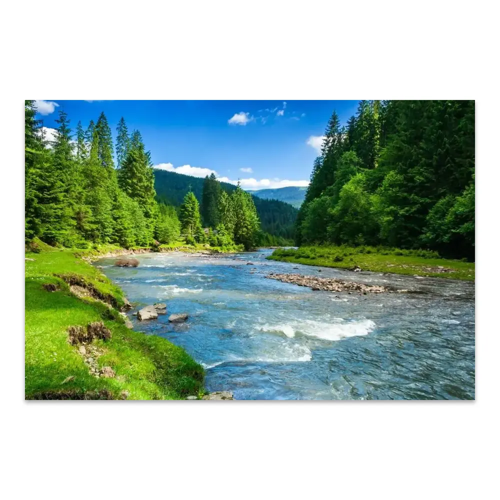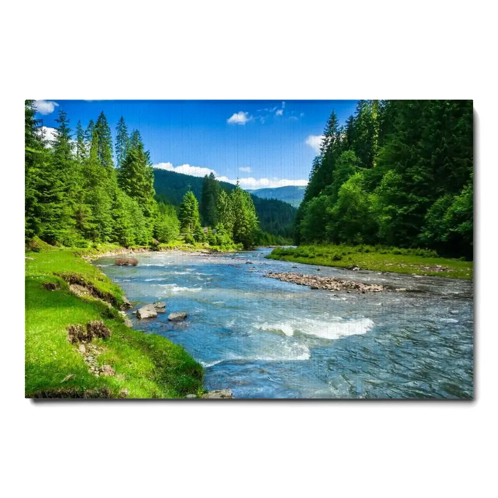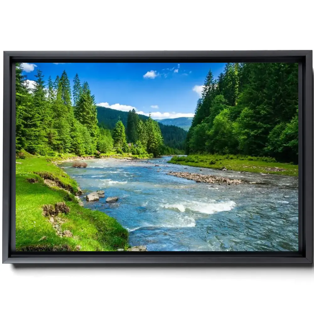 Beautiful Scenery Landscape With Mountains Forest And A River Modern Artwork Wrapped Canvas Print For Office Home Decoration