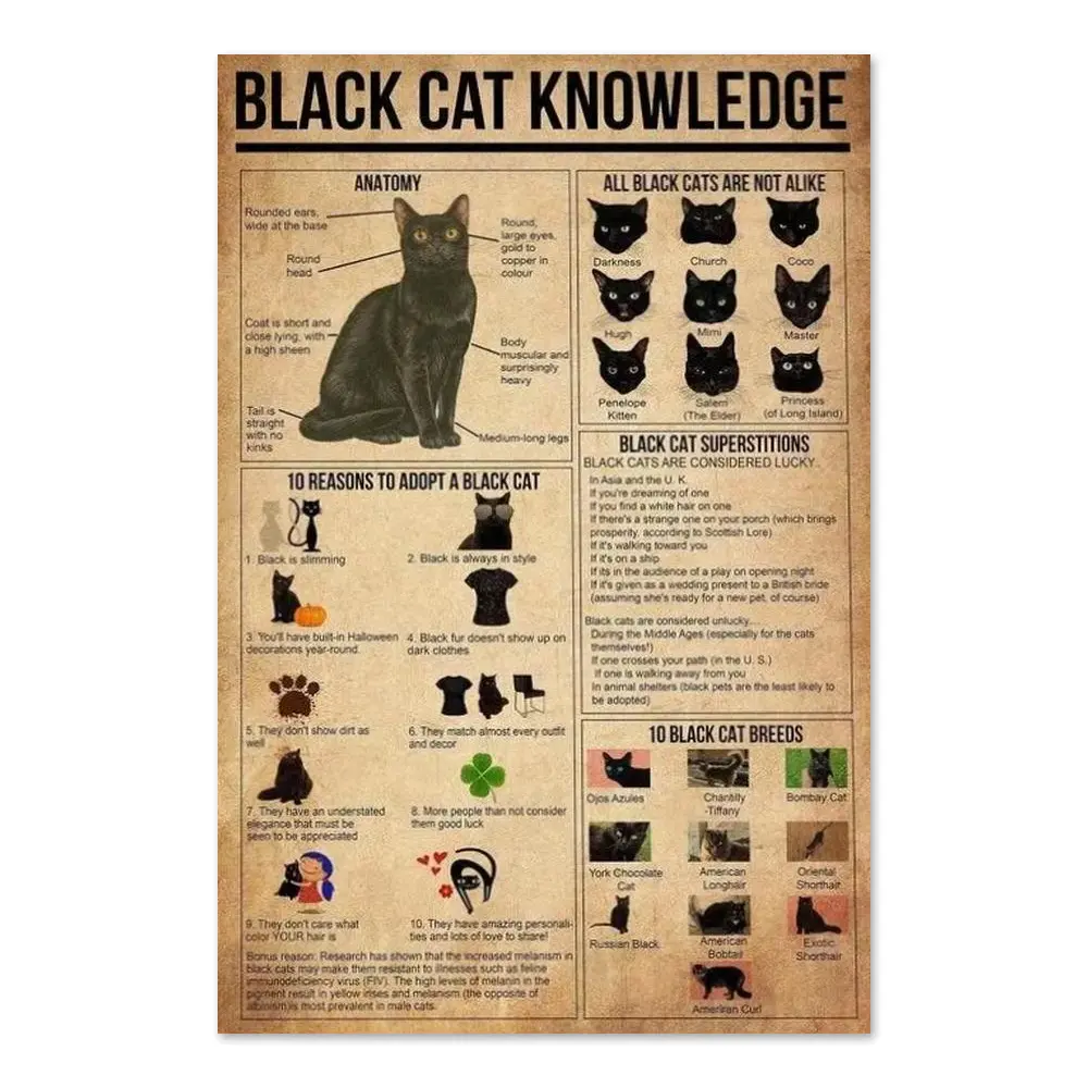 Black Cat Knowledge Black Cat Poster Black Cat Witch Black Cat Print Halloween Black Cat Decorations Halloween Wall Art Black Cat Decor