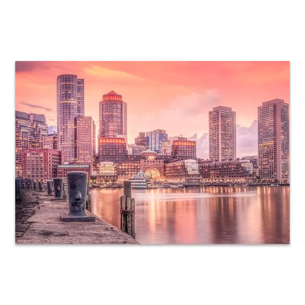 Boston Massachusetts Downtown Photography Landmark Canvas Metal Print Bedroom Sunset Wall Art Cityscape