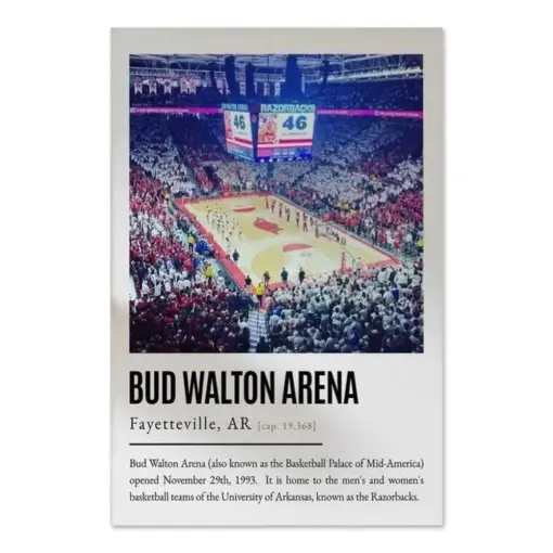 Bud Walton Arena Seat View Arkansas Razorbacks Modern Basketball Wall Art Home Decor Game Day Keepsake Memory