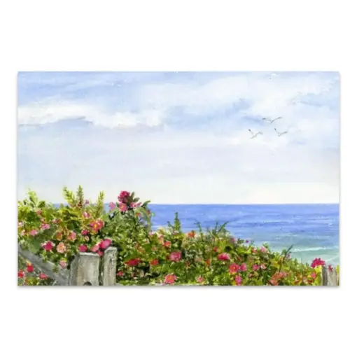 Cape Cod Watercolor Print Mothers Day Gift Weathered Fence Cape Cod Painting Beach House Decor Watercolor Beach Scene Wild Beach Roses