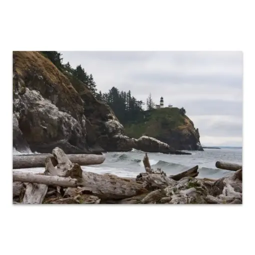 Cape Disappointment Lighthouse And Beach Washington Coast Photography Pacific Northwest Ocean Scene Mysterious Sea Coastal Art Print