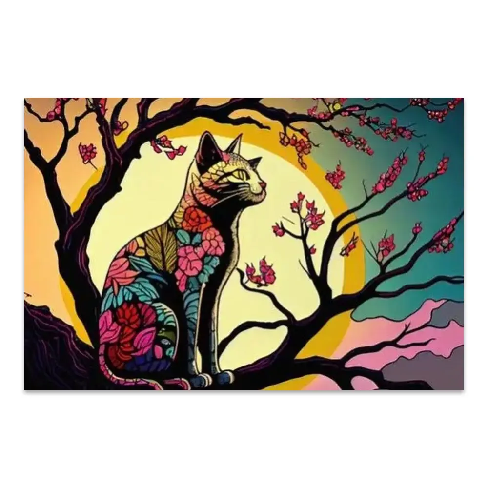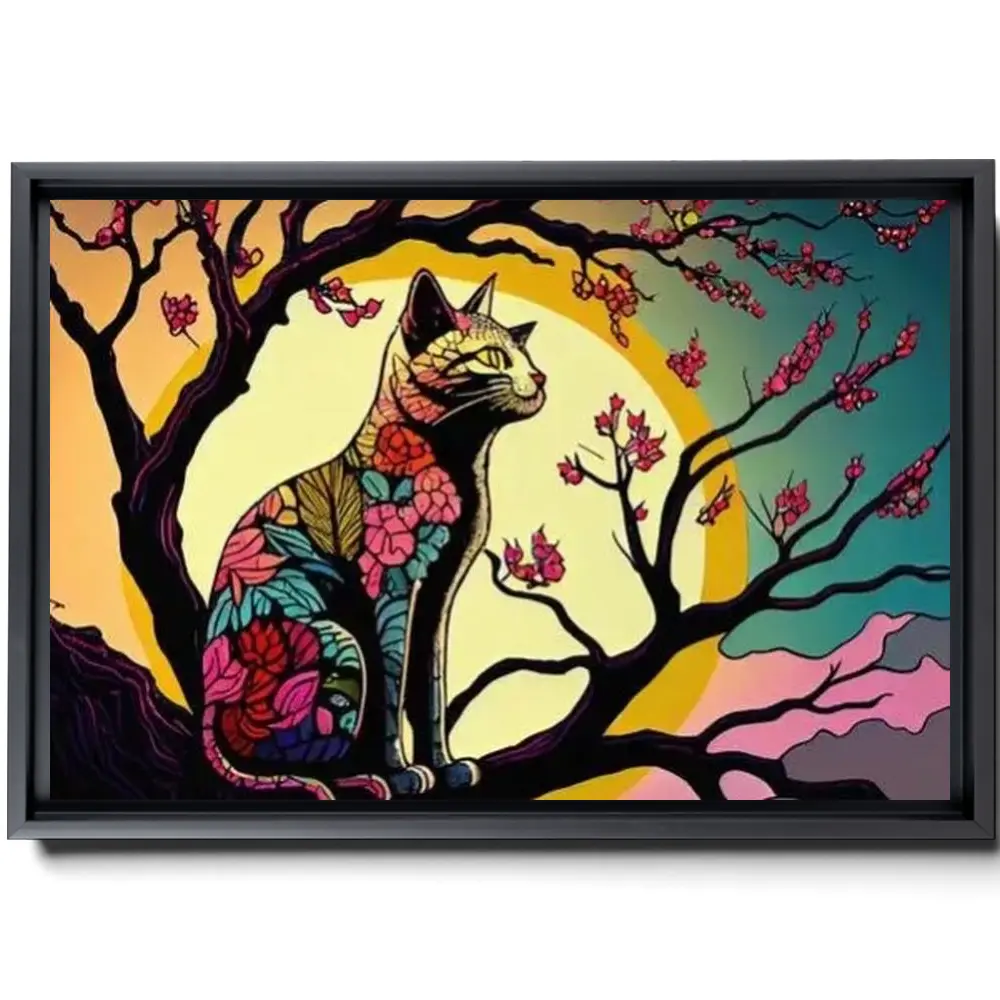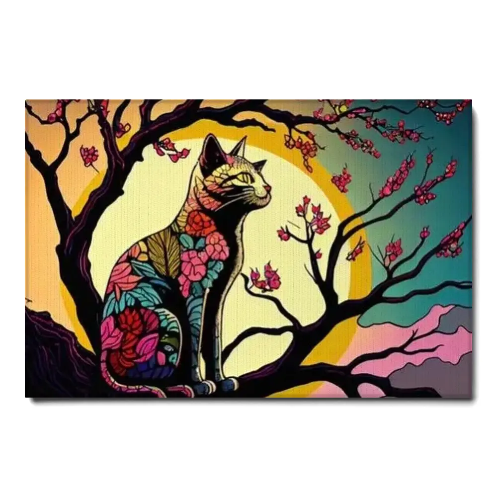 Cat Animal Canvas – Rainbow Cat Japanese Cherry Tree – Picasso Style