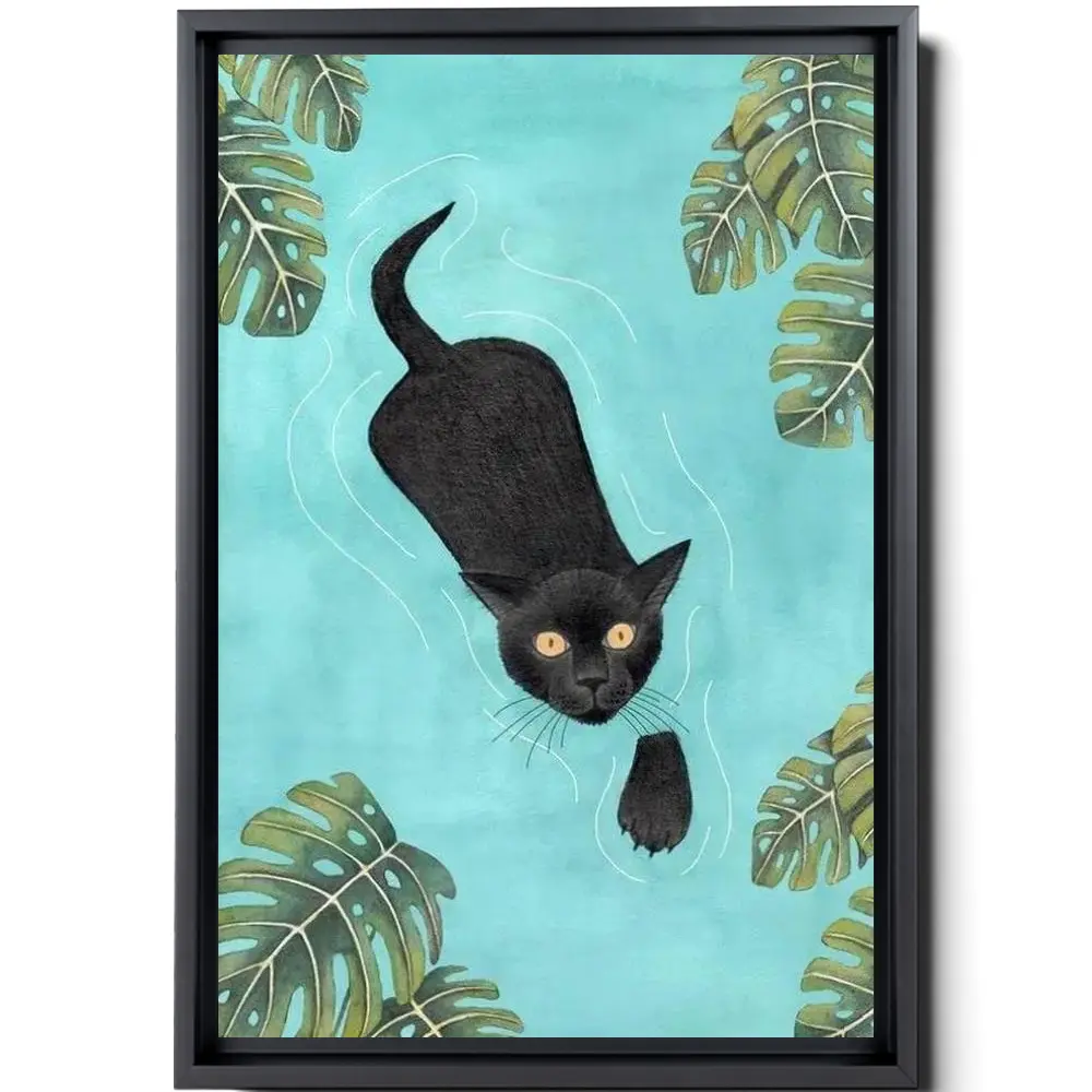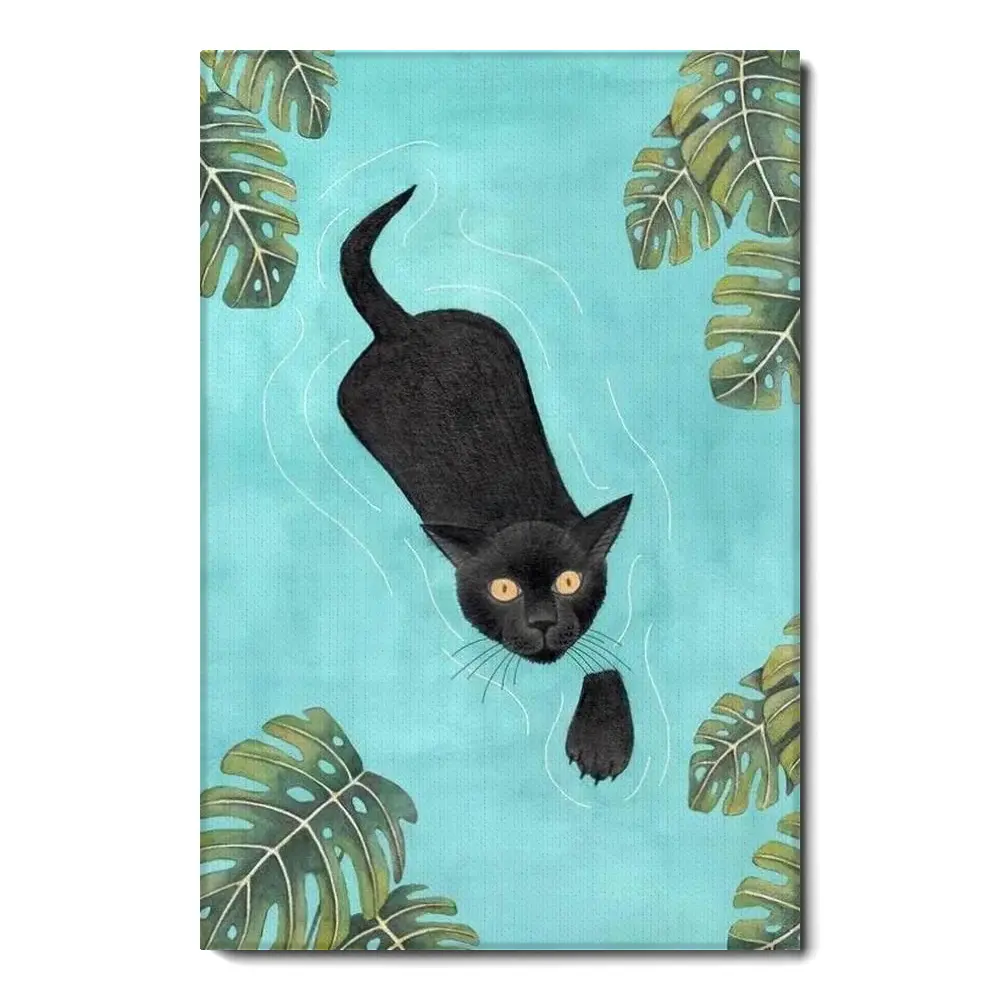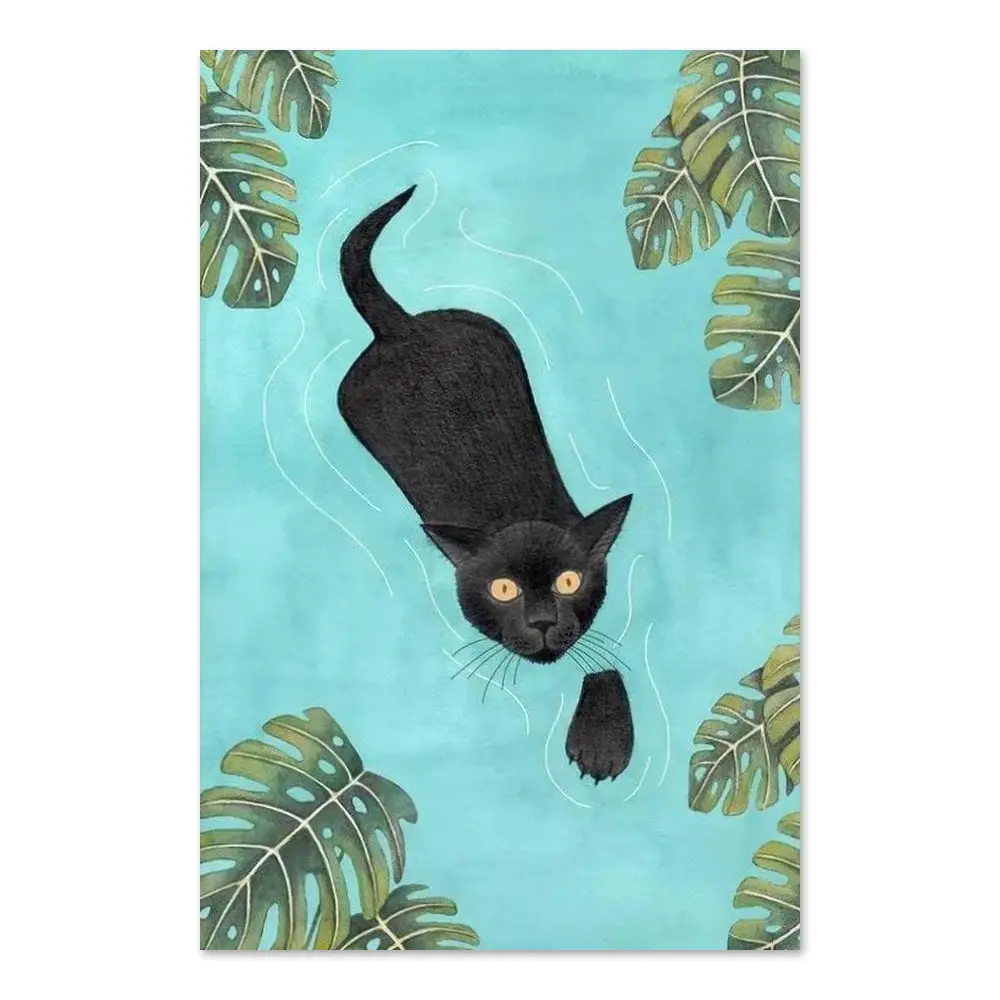 Cat Drinkable Wall Art Black Cat Art Print Cats Poster Jungle Illustration Animal Painting Kitten Able Artwork