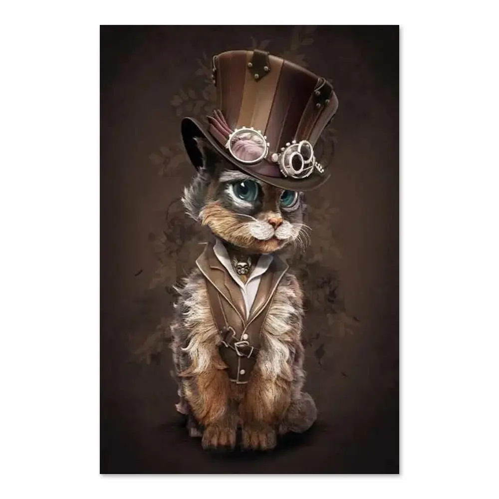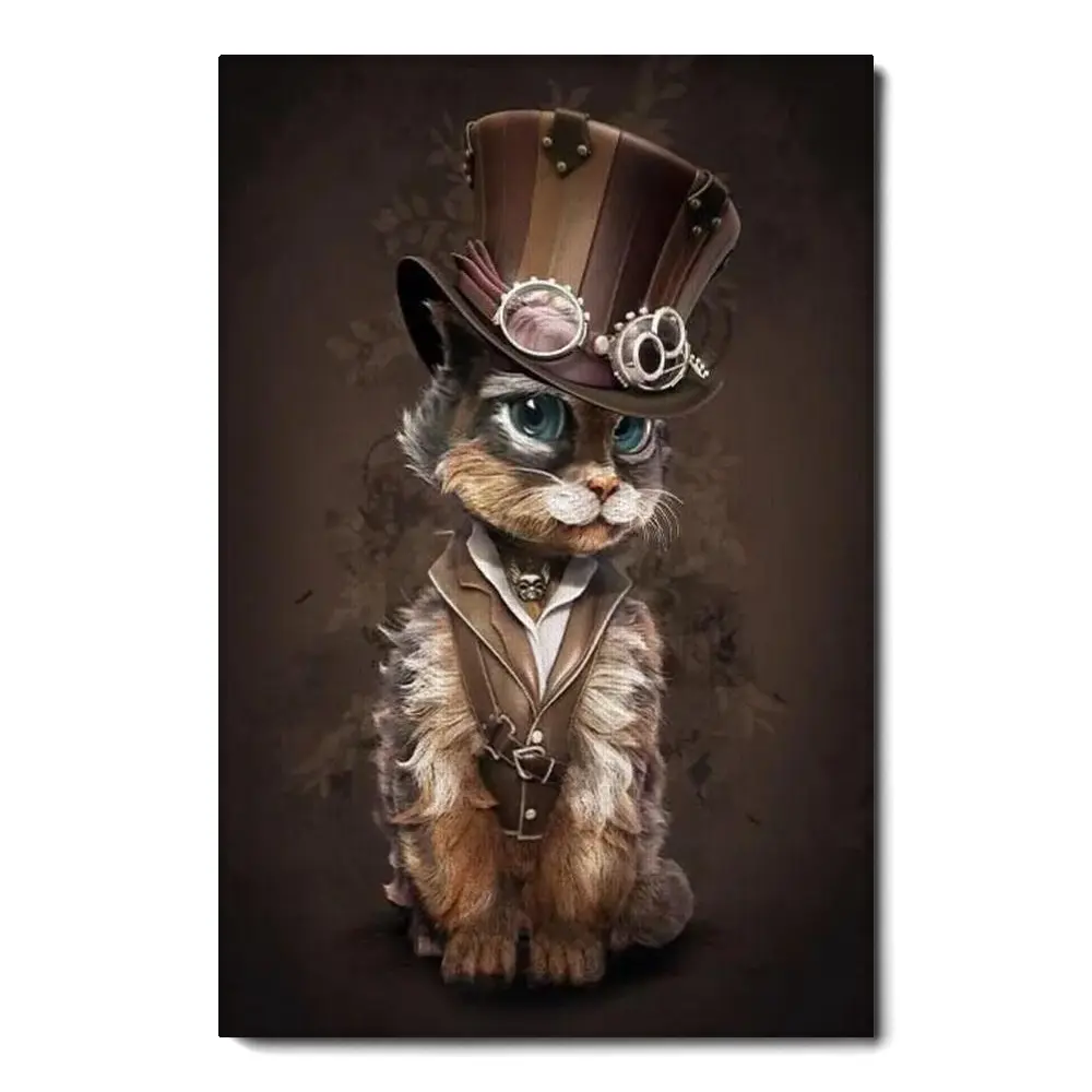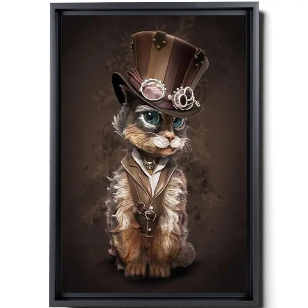Cat In Hat Canvas Wall Art , Sweet Cat Canvas Painting , Cat Canvas Prints , Ready To Hang Canvas Print , Modern Home Decor
