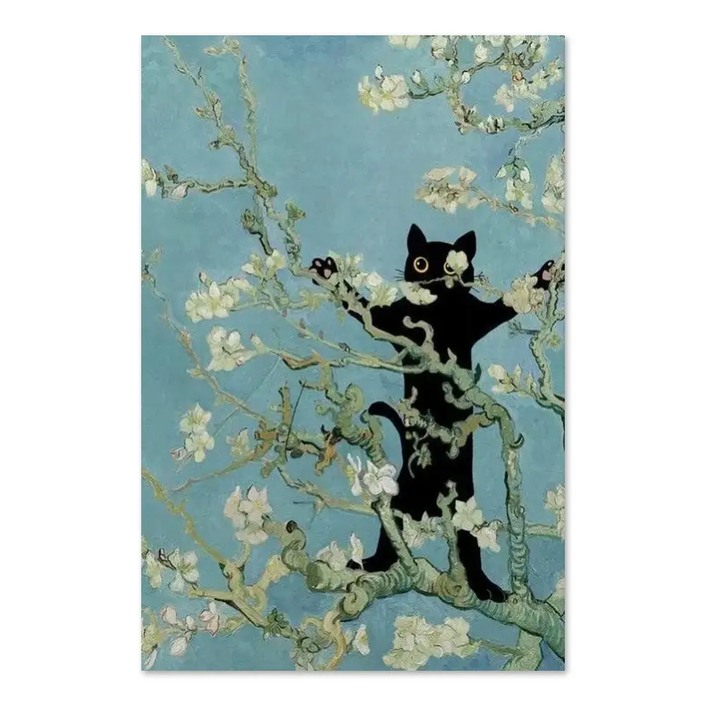 Cat Poster Van Gogh Almond Blossom Still Life Funny Gift Print Wall Art Famous Painting