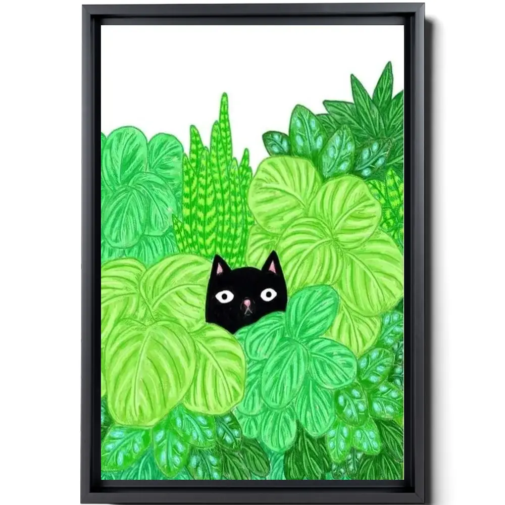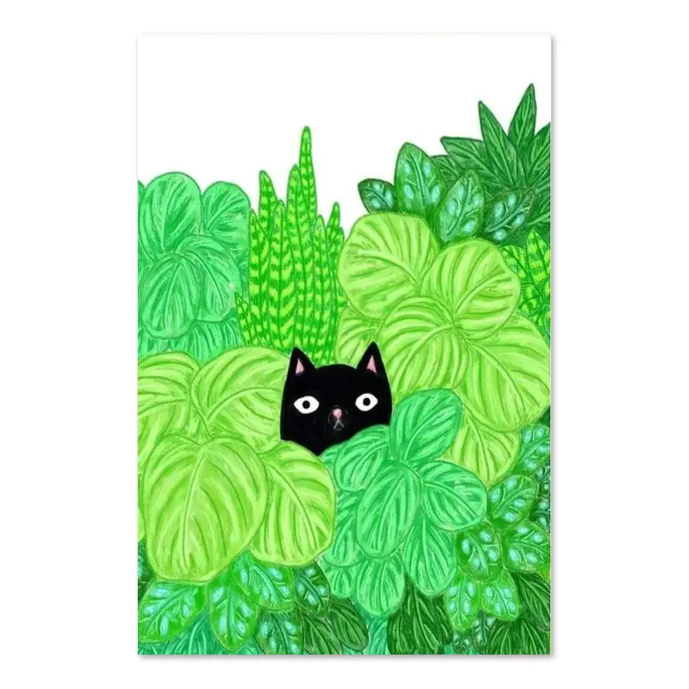 Cat Print / Cat And Print / Art / Cat Illustration / Black Cat Print / Illustration / Cats And Plants Art
