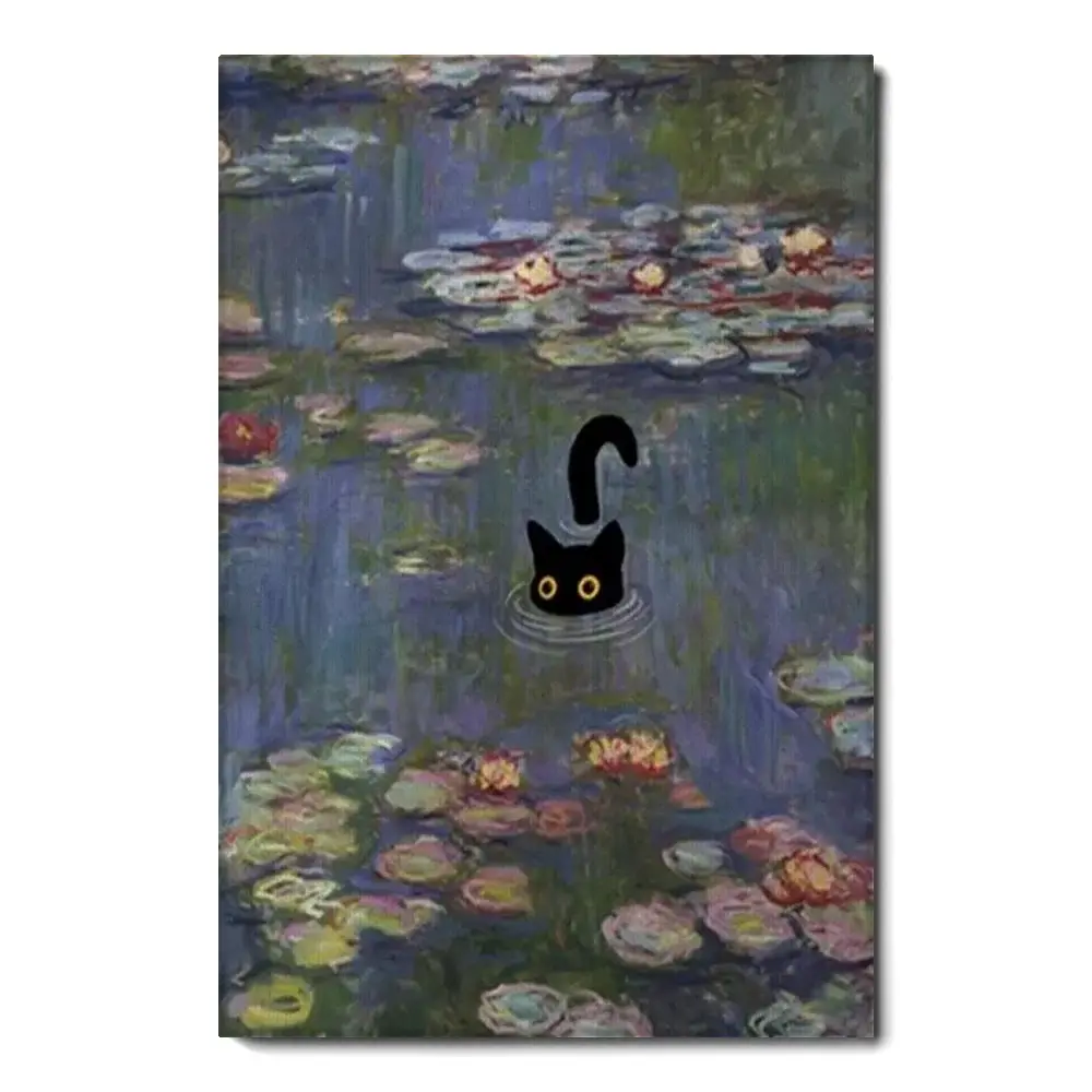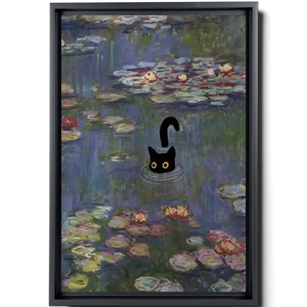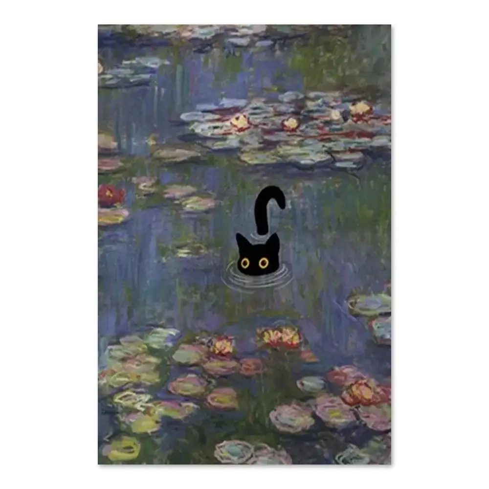 Cat Print Monet Water Lilies Funny Gift Poster Wall Art Home Decor