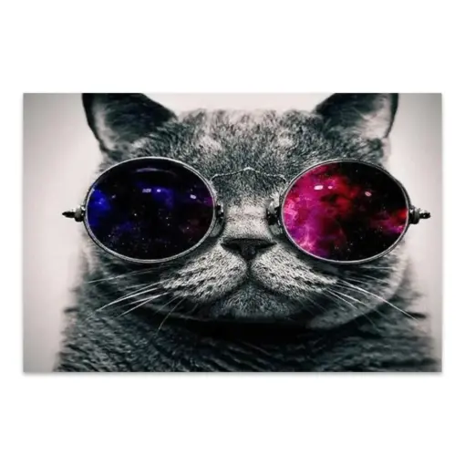 Cat With Glasses Canvas Wall Art , Space And Glasses Canvas Painting , Cat Canvas Prints , Ready To Hang Canvas Print , Modern Home Decor