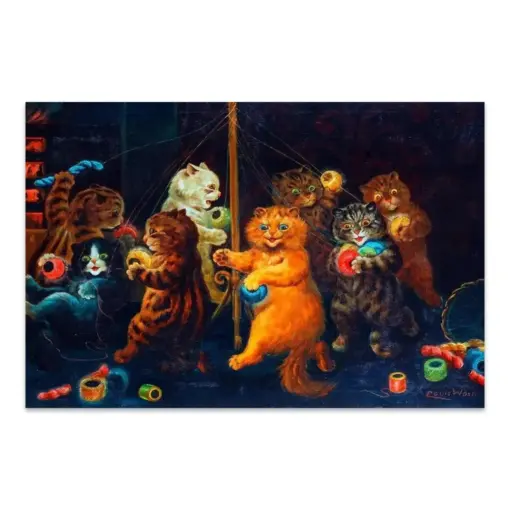 Cats Louis Wait The Maypole Cats Wall Art Famous Artist Living Room Decor Oil Painting
