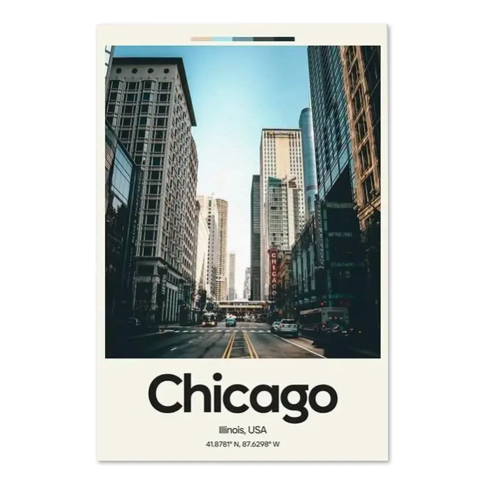 Chicago Illinois Poster – Oil Painting Technique | United States Wall Art | & Printed Travel Prints | Animalistic Home Decor