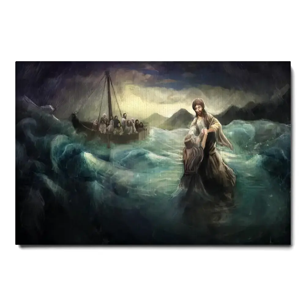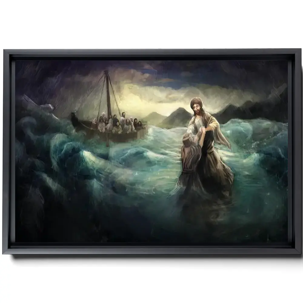 Christ Walk On The Jesus Walking On Water Jesus Christ Canvas Framed Christian Wall Art