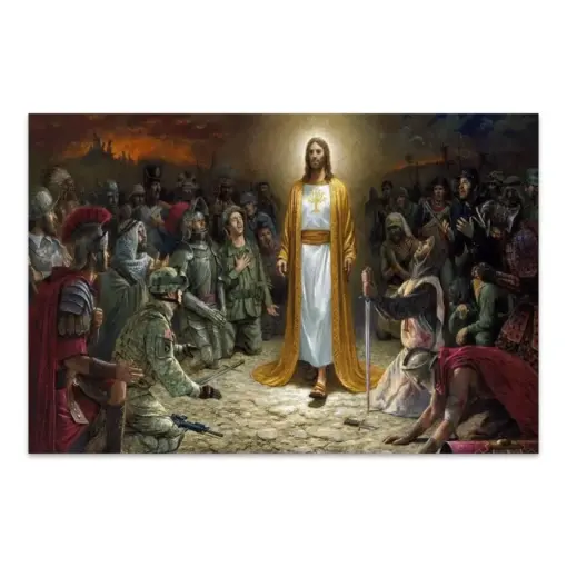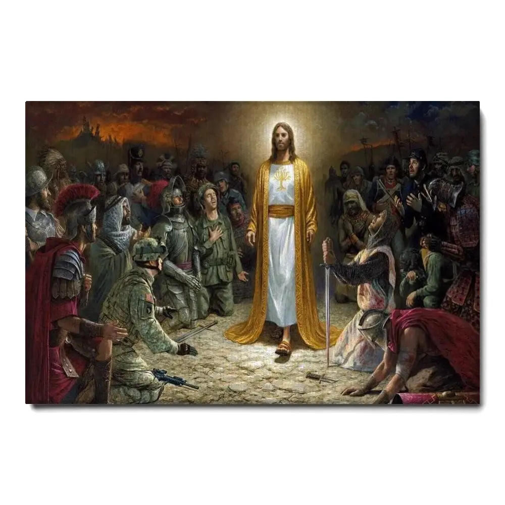 Christian Wall Art Jesus Ready To Hang And People Canvas With Soldiers On Wall Poster Art