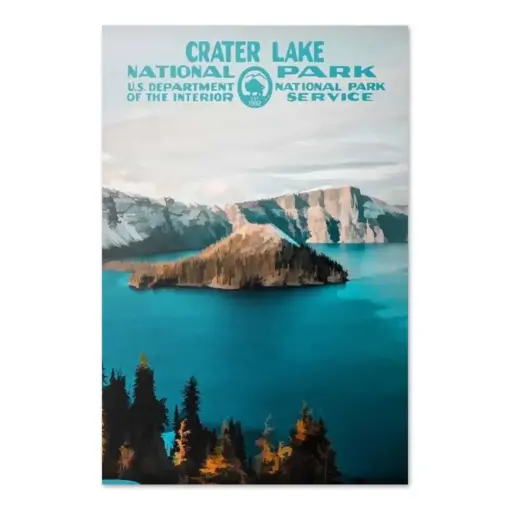 Crater Lake National Park Poster | National Park Poster | National Park Print | Vintage Poster | Wall Art | Home Decor