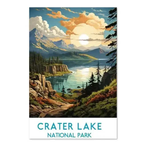 Crater Lake Travel Print Wall Art Crater Lake Wall Hanging Home Decor Crater Lake Gift Art Lovers National Park Art Poster