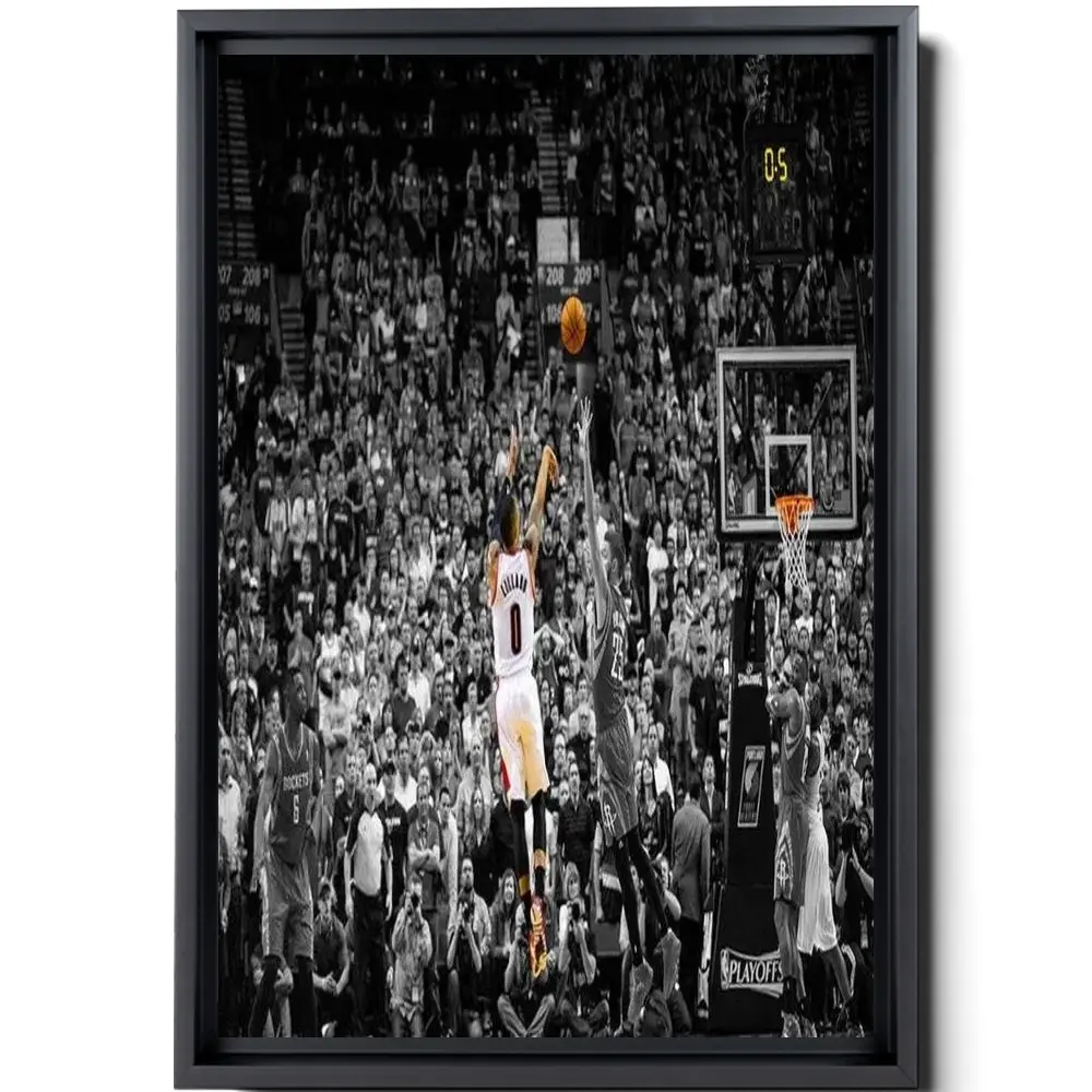 Damian Willard Wall Art Basketball Poster Damian Willard Canvas Portland Trail Blazers Nba Fan Gift 3 Point Shot Print Framed Art