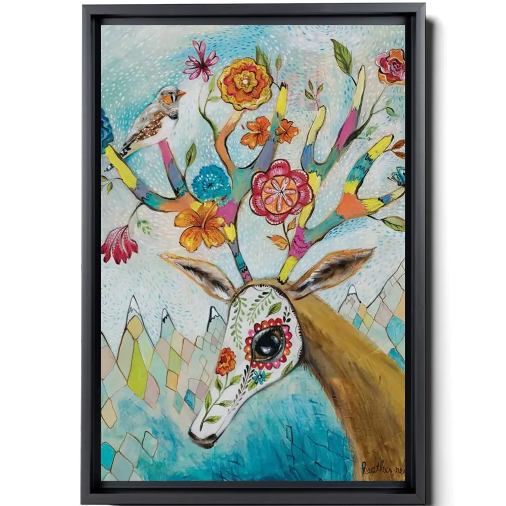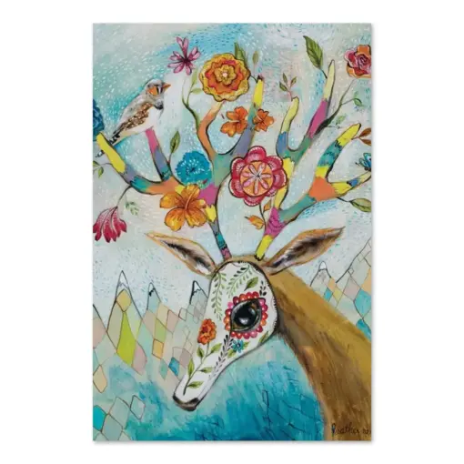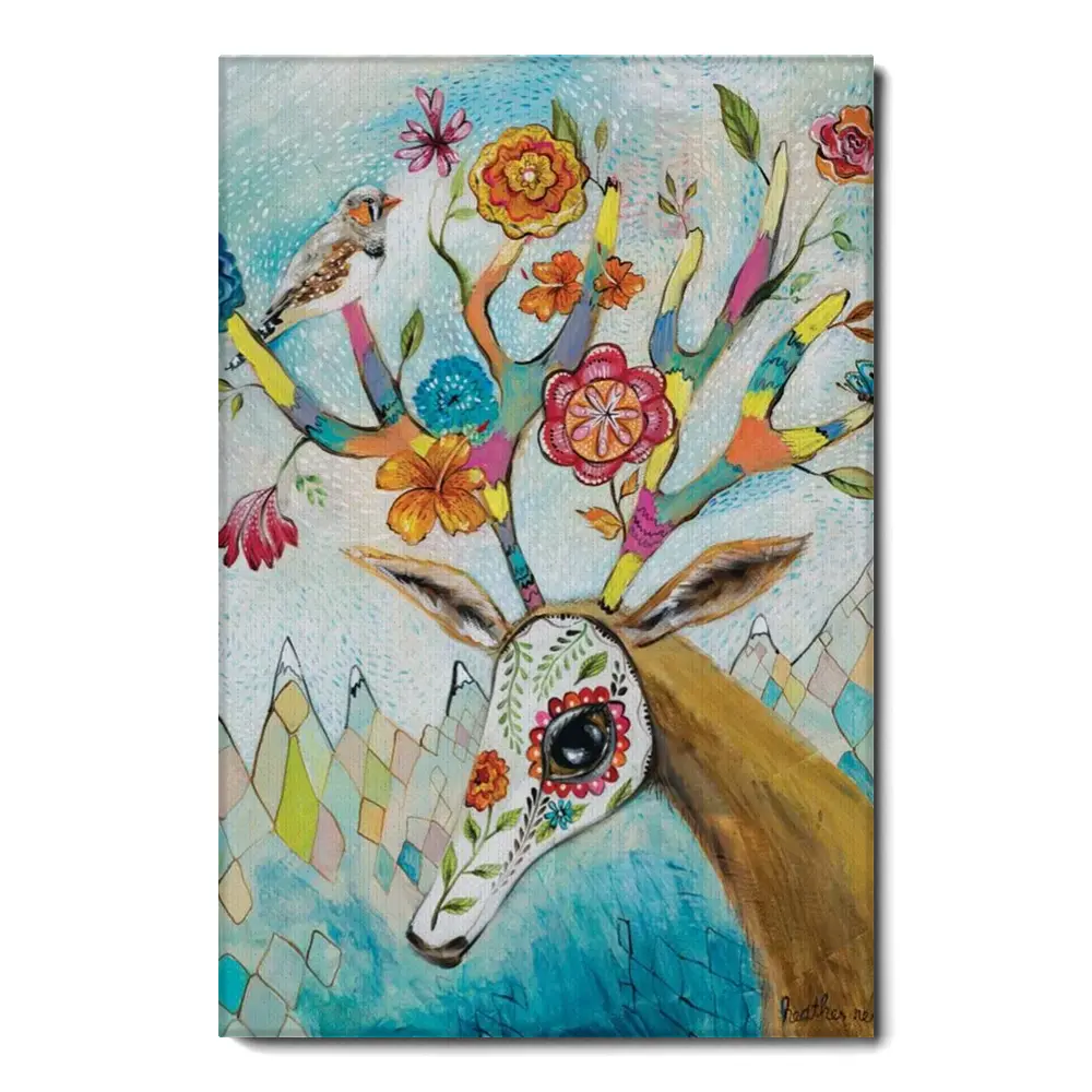 Deer Flowers Butterfly Bird Rainbow Antlers Snowy Mountains – Day Of The Dead – Sugar Skull – Dia De Los Rocky Mountain Love