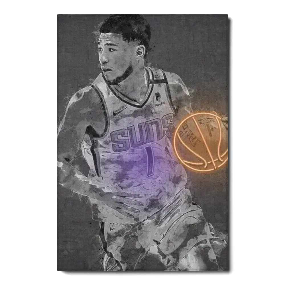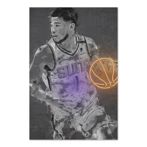 Devin Booker Poster Neon Effect Phoenix Suns Basketball Hand Made Poster Canvas Print Kids Wall Art Man Cave Gift Home Decor