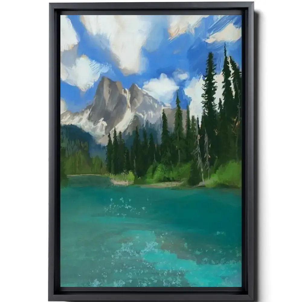 Emerald Lake Painting Framed Art Print On Matte Paper Yoo National Park In British Columbian Canadian Rockies Wall Art