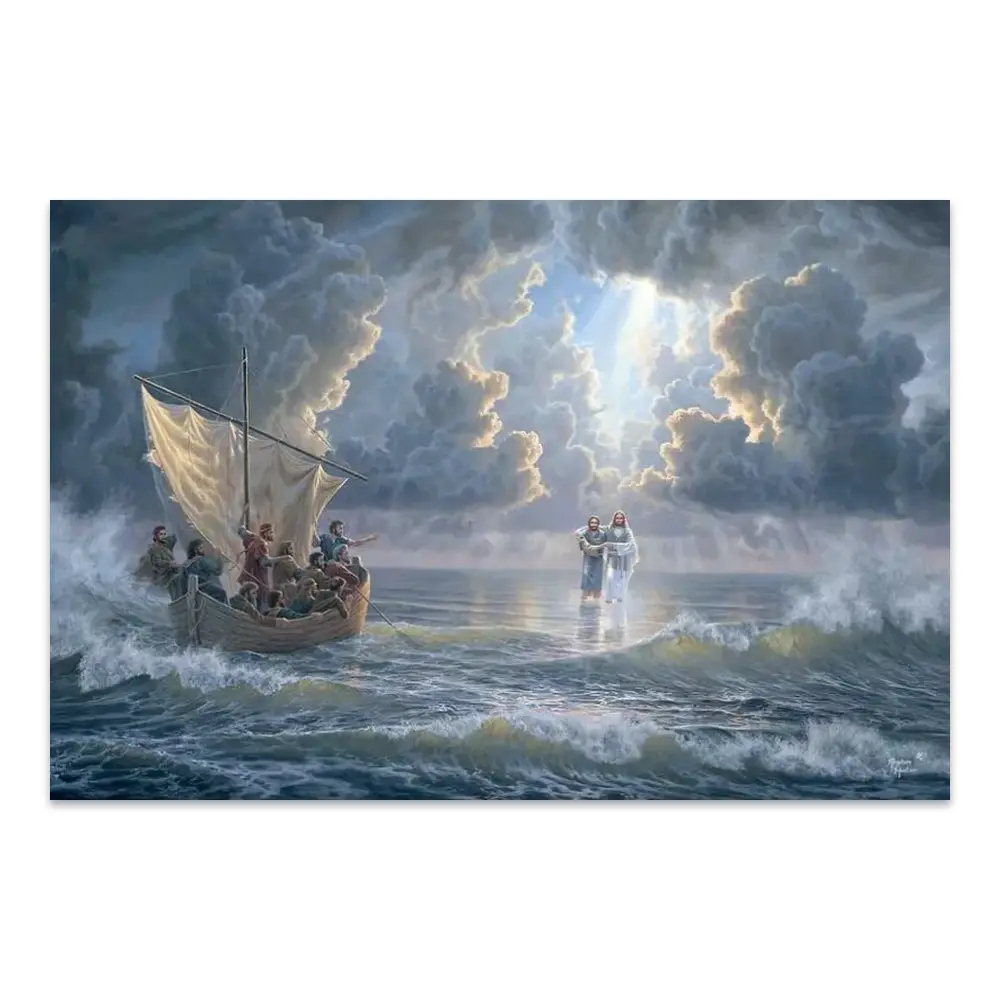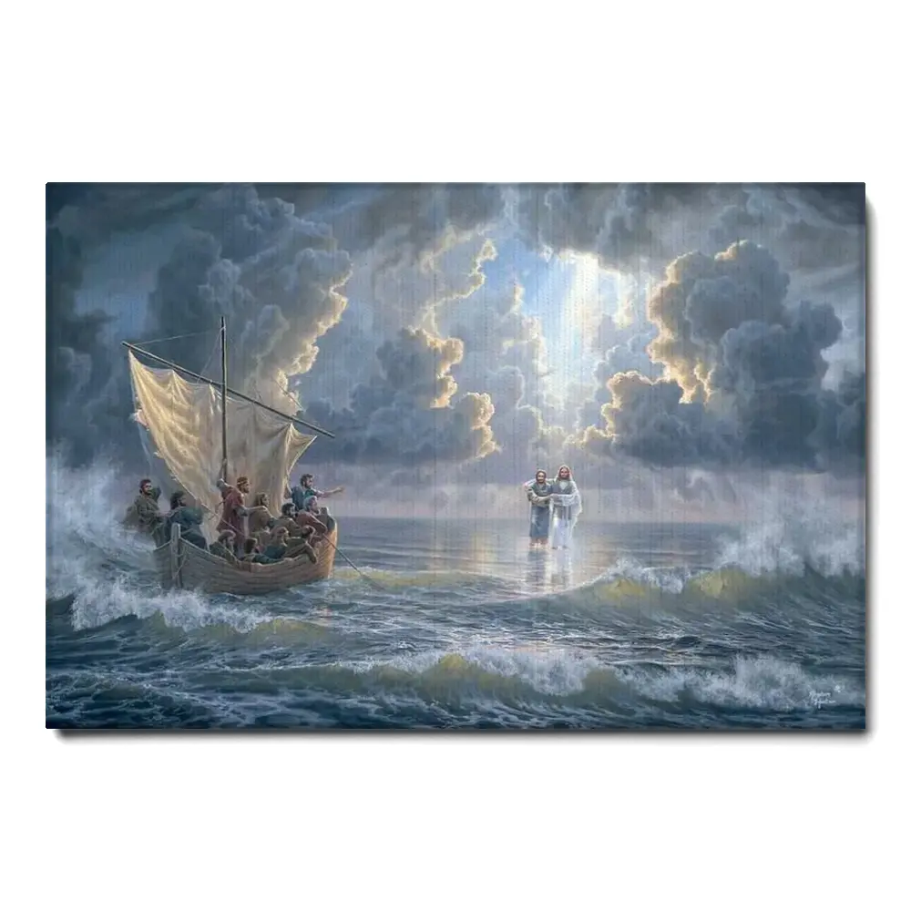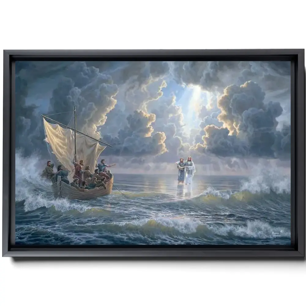 Framed And Canvas Walking On Water , Jesus Christ Canvas Framed , Christian Believer Print Art Jesus Canvas Print