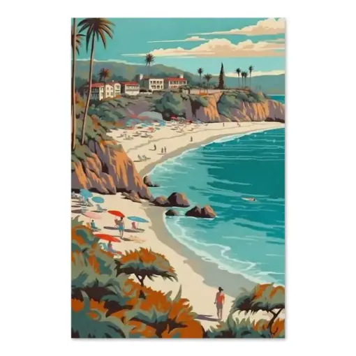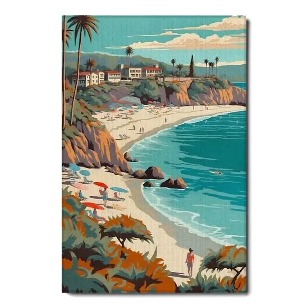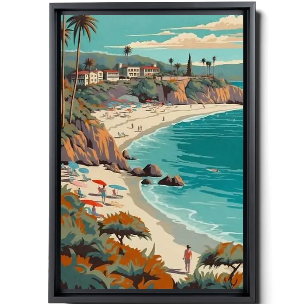 Framed Canvas Wall Art Mediterranean Tropical Beach Shore Ocean Illustration Travel Print Minimalist Modern Wall Art Decor