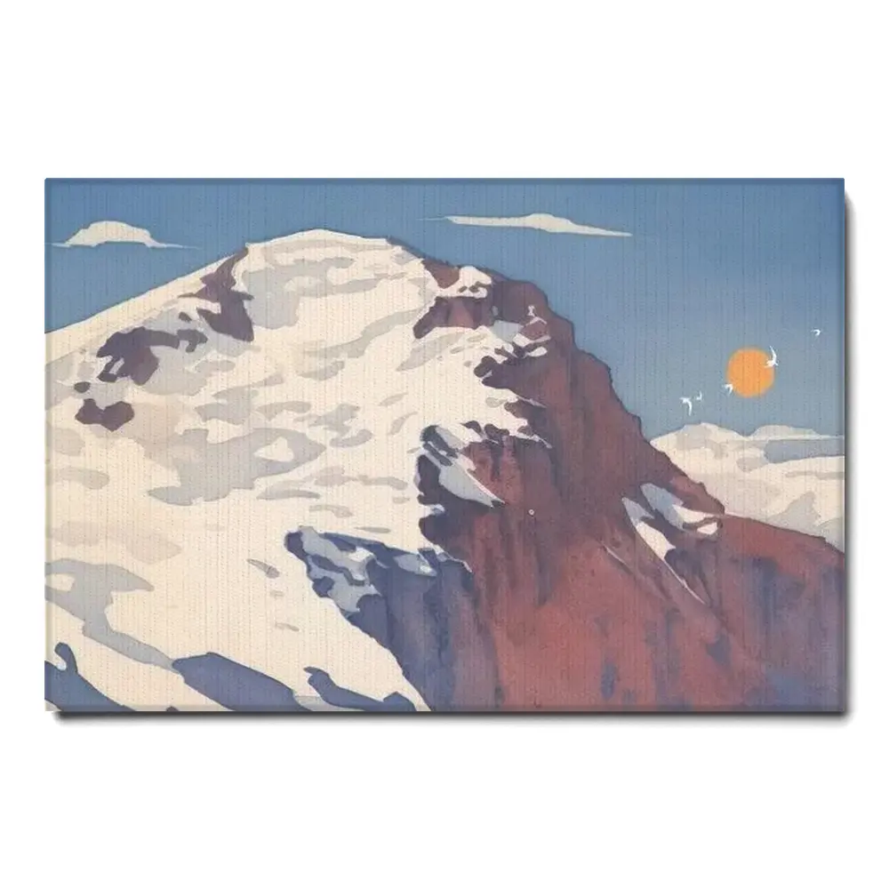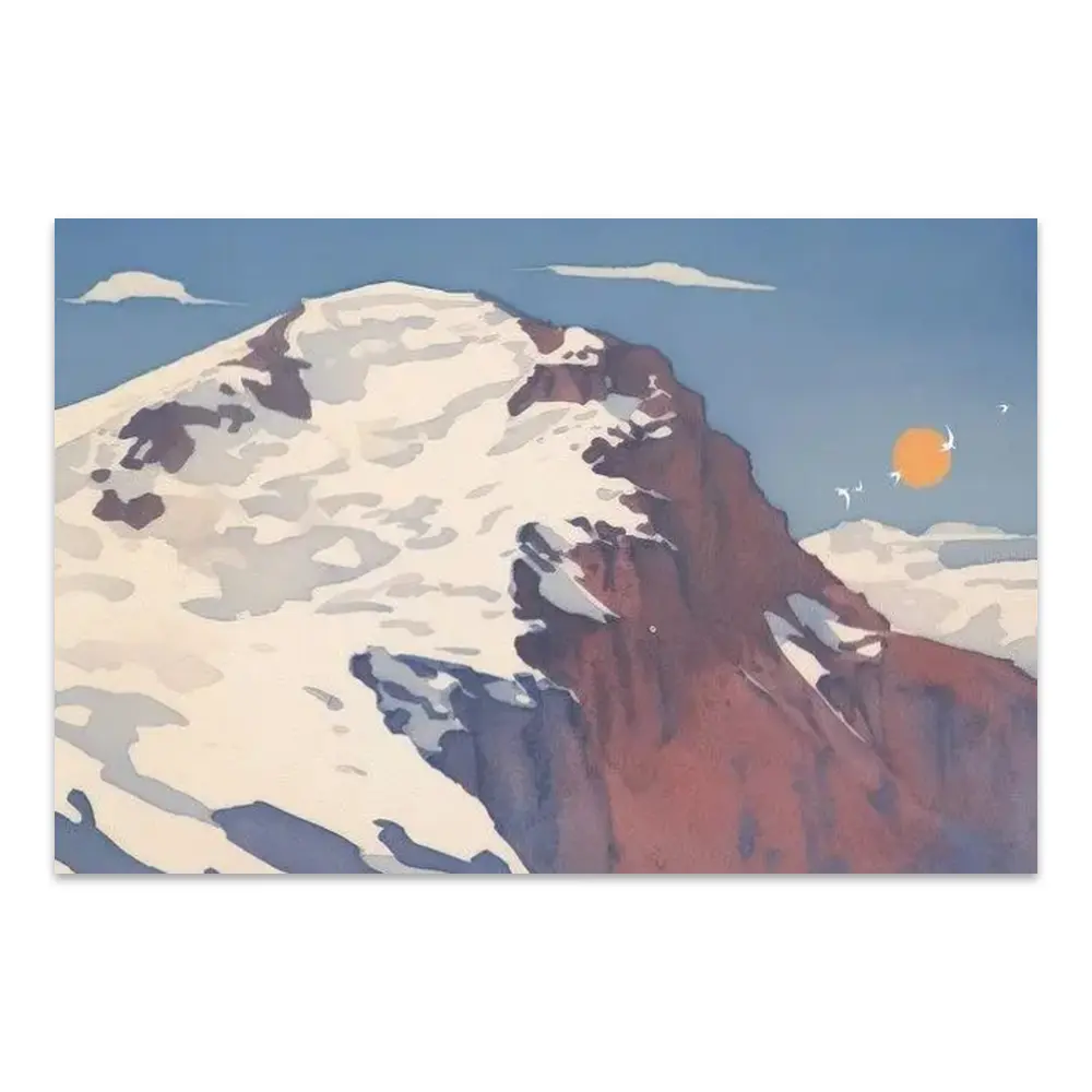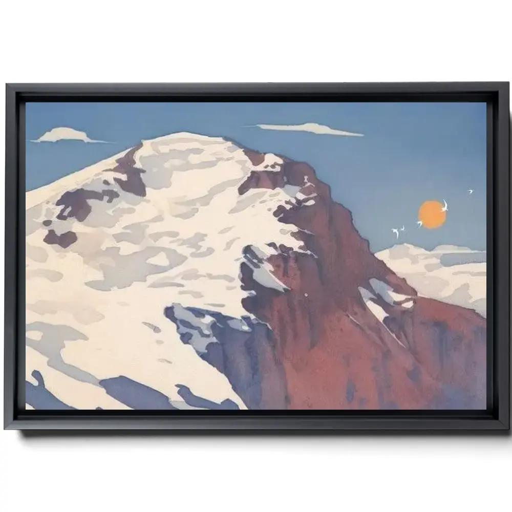 Framed Canvas Wall Art Print Pastel Watercolor Wall Art Mountain Art Print Sun Print Mountain Poster Landscape Prints Snow Mountain Art