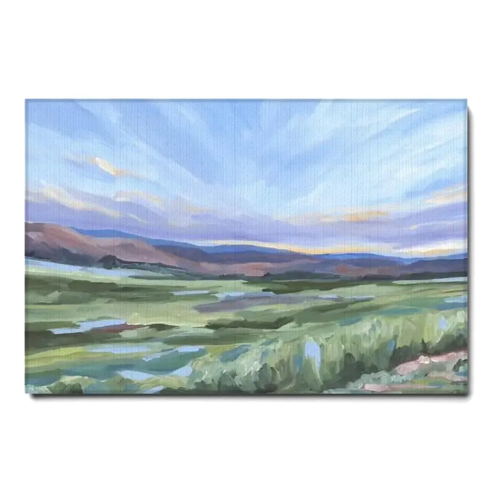 This is a more casual and often more artistic style of canvas presentation. A hanging canvas typically consists of a canvas fabric sheet with two wooden bars attached at the top and bottom. The top bar includes a hanging mechanism, usually a string or a cord, for easy display. This style allows the canvas to hang freely against the wall, giving it a slightly informal, bohemian feel. The canvas in this case can be easily rolled for storage or transport.