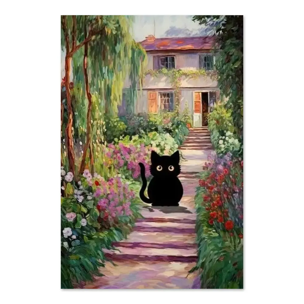 Garden Path And Cat Cat Print Black Cat Poster Black Cat Print Cat Art Print Drinkable Poster Funny Cat Print Funny Gifts