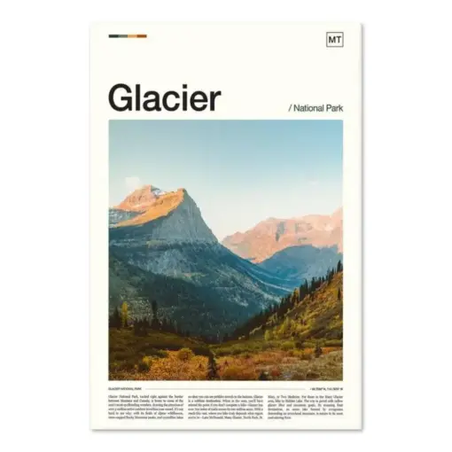 Glacier National Park Poster Glacier National Park Print National Park Art National Park Wall Art National Park Prints Travel Poster
