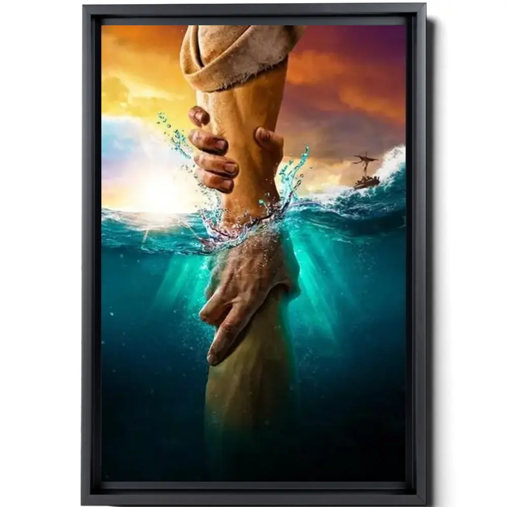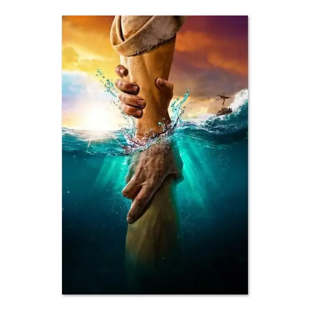 God’s Hand Print Modern Christian Art Print Jesus Hand In Water Canvas Wall Art Abstract Bible Verse Art Living Room Decor
