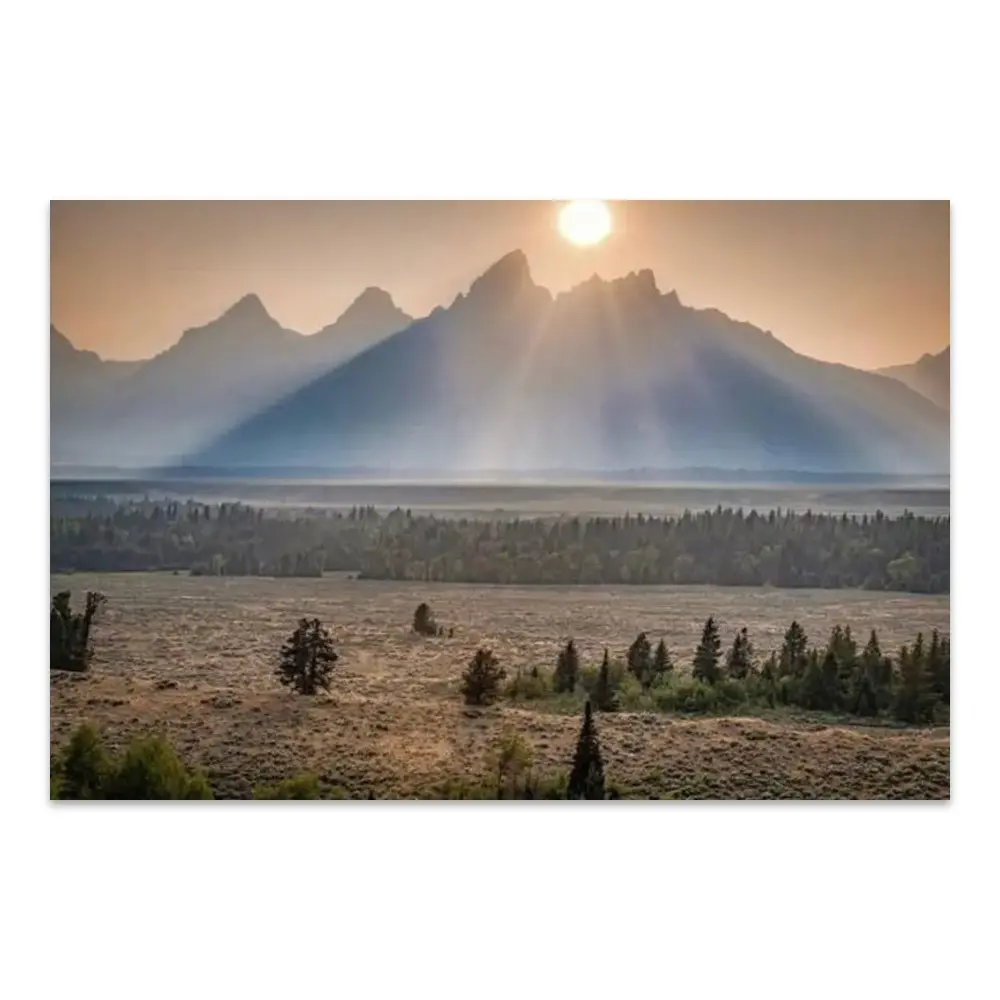 Grand Iconic Overlook Vintage Classic National Park Jackson Hole Wyoming Mountain Landscape Rustic Wall Decor Beautiful Vista