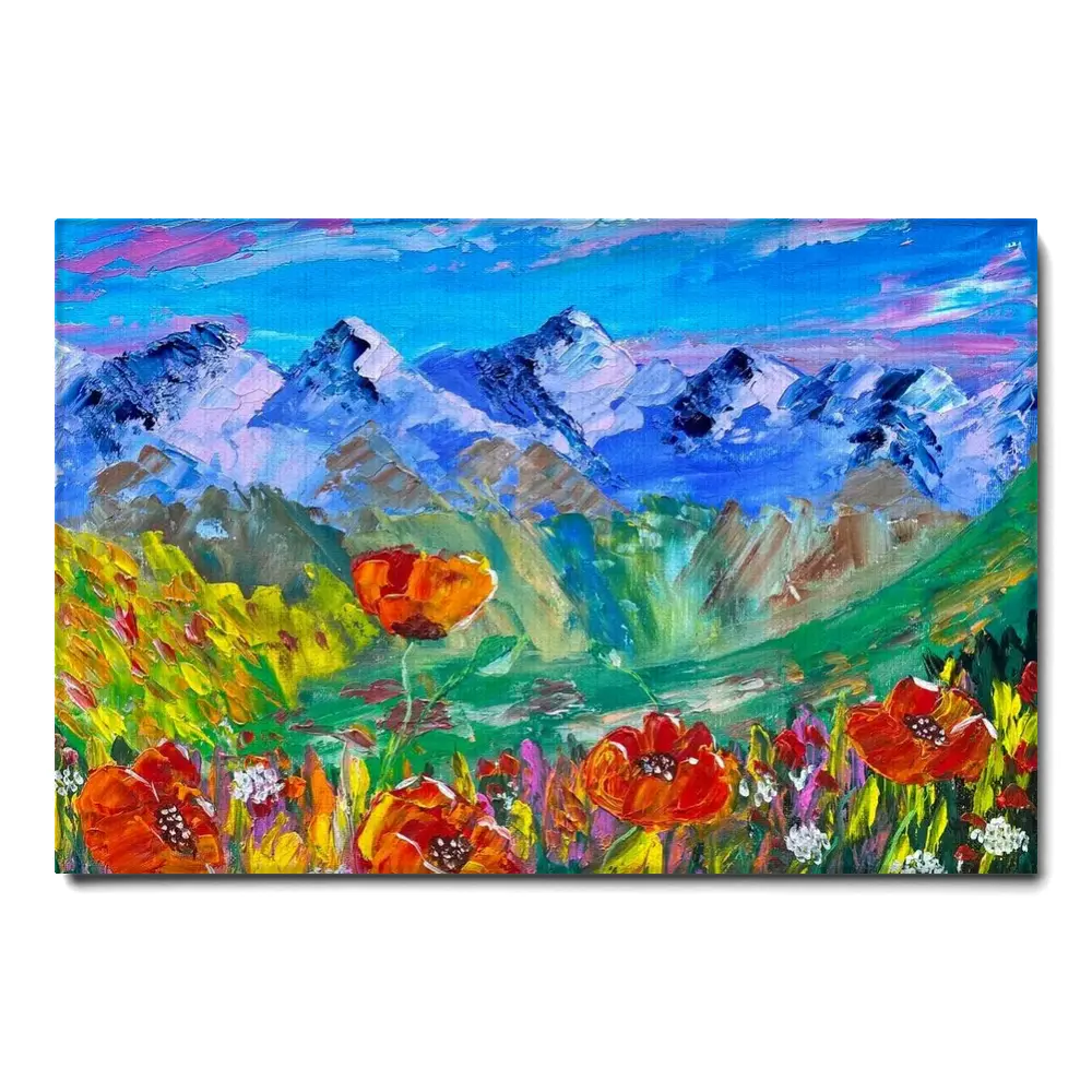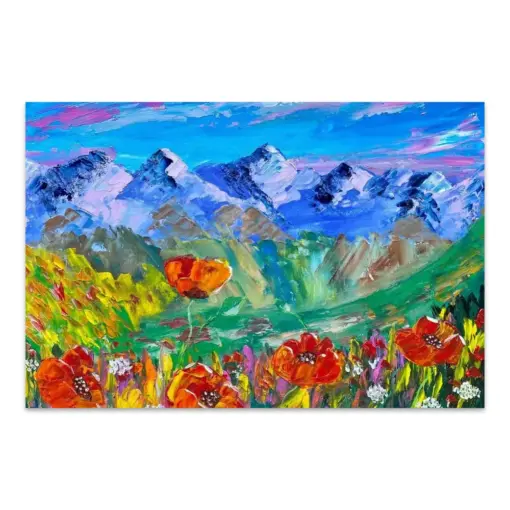 Be the first to review “Grand Ten Original Painting National Park Red Poppy Rocky Mountains Fields Impact Ad Painting Textured Wall Art Palette Knife Artwork”
