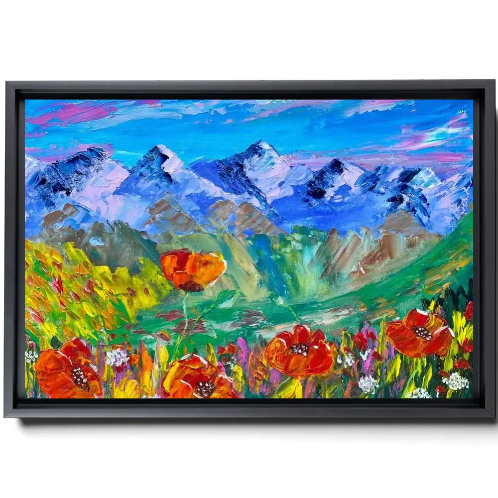 Grand Ten Original Painting National Park Red Poppy Rocky Mountains Fields Impact Ad Painting Textured Wall Art Palette Knife Artwork